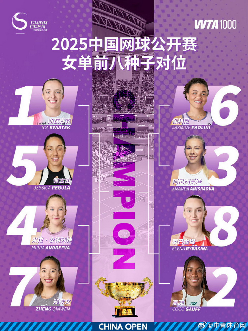 2025中网签表郑钦文对位小米辣米拉·安德列娃